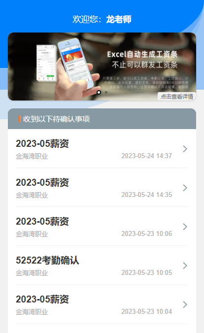 确认助手采用后台发送,后台发送时只需要将现有含有员工姓名和手机号码的工资表一键导入,系统自动智能解析和识别方式进行工资条发送。