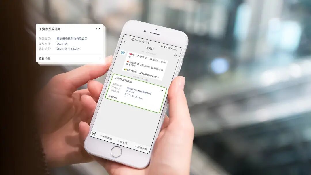 微信公众号(或短信)实时消息通知模式发送工资条信息,可以一键点击查看工资条详情。