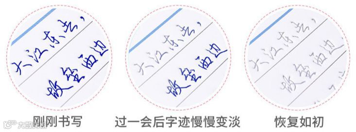 而我们这款南国书香字帖套装,配的是环保自动褪色笔芯,写过的字迹几分钟开始变淡,半个小时之后完全褪色。