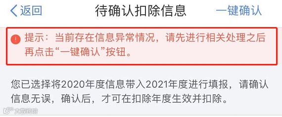 提醒:当有异常情况时,先确认信息正确性,需修改的可进入修改(部分专项可能已过期/作废,如子女教育幼升小、初升高跨越学阶等)