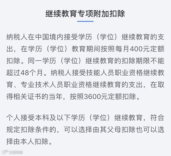 1 继续教育专项附加扣除的扣除范围是怎么规定的?