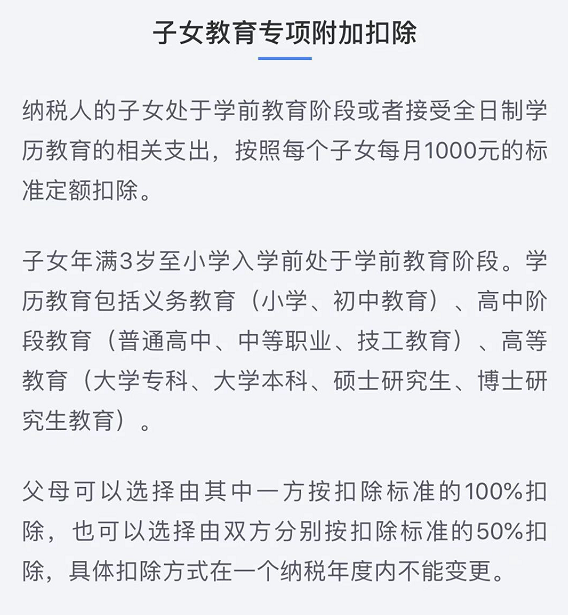 答:纳税人为独生子女的,按照每月2000元的标准定额扣除;纳税人为非独生子女的,应当与其兄弟姐妹分摊每月2000元的扣除额度。