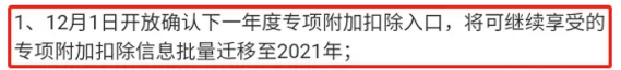 12月底前,需要对2021年享受专项附加扣除的内容进行确认: