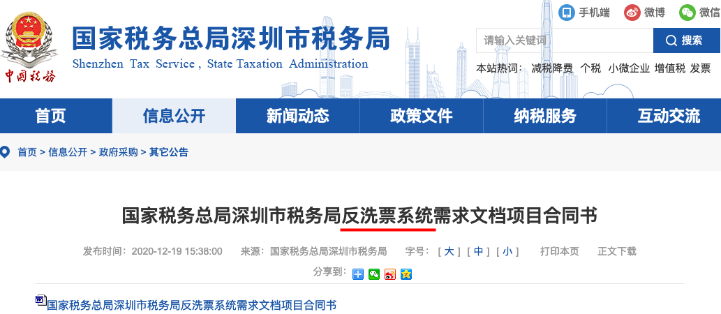 就在最近国家税务总局深圳市税务局公开发布了《反洗票系统需求文档项目合同书》,就反洗票系统做了明确的阐述。