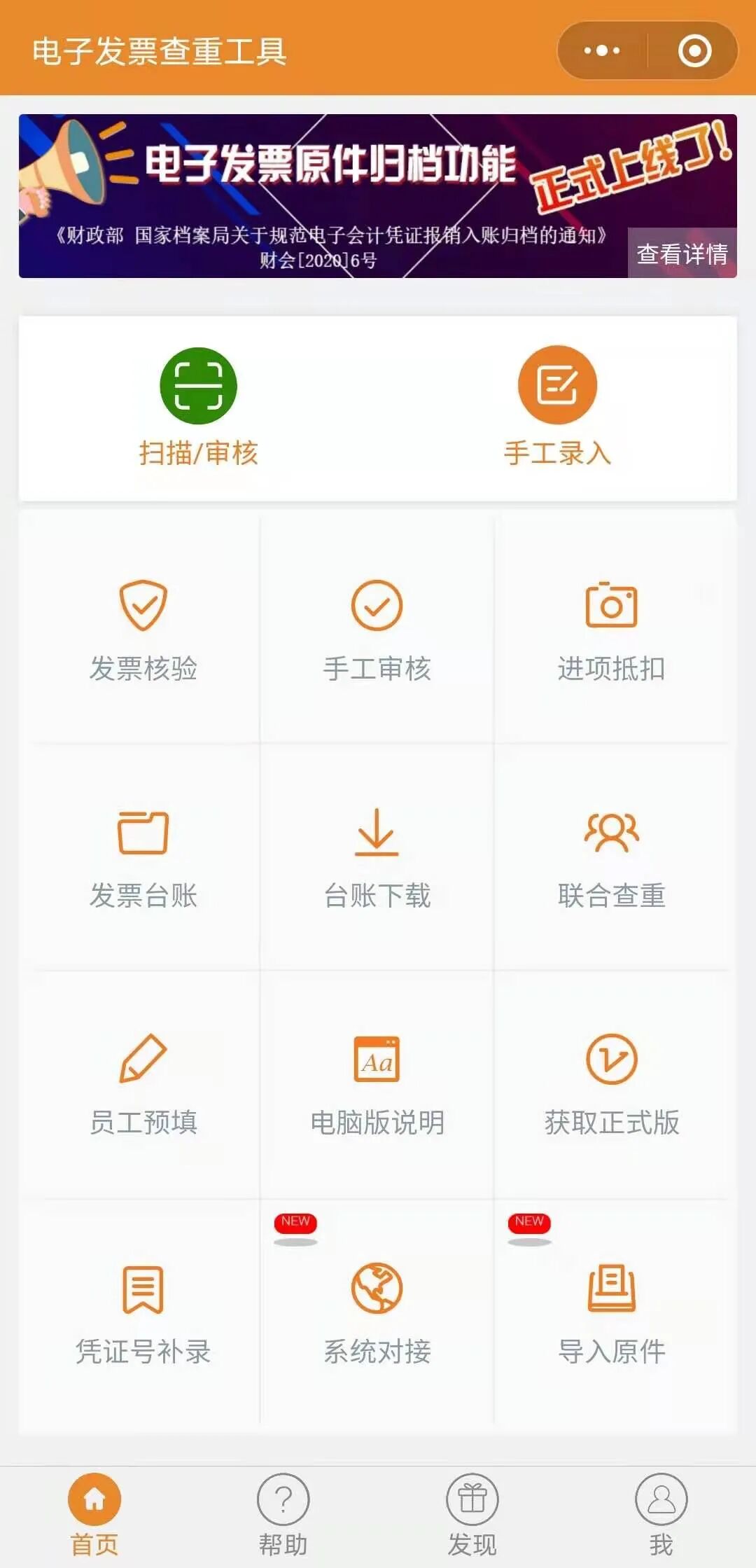 系统将自动识别发票原件信息,并且将发票的电子原件一起上传,完善信息后提交,可将原件一起归档保存至台账。