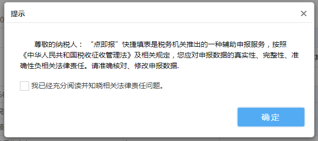 (系统会提醒您对申报表数据的真实性、完整性、准确性负有核对、确认的义务和责任。)