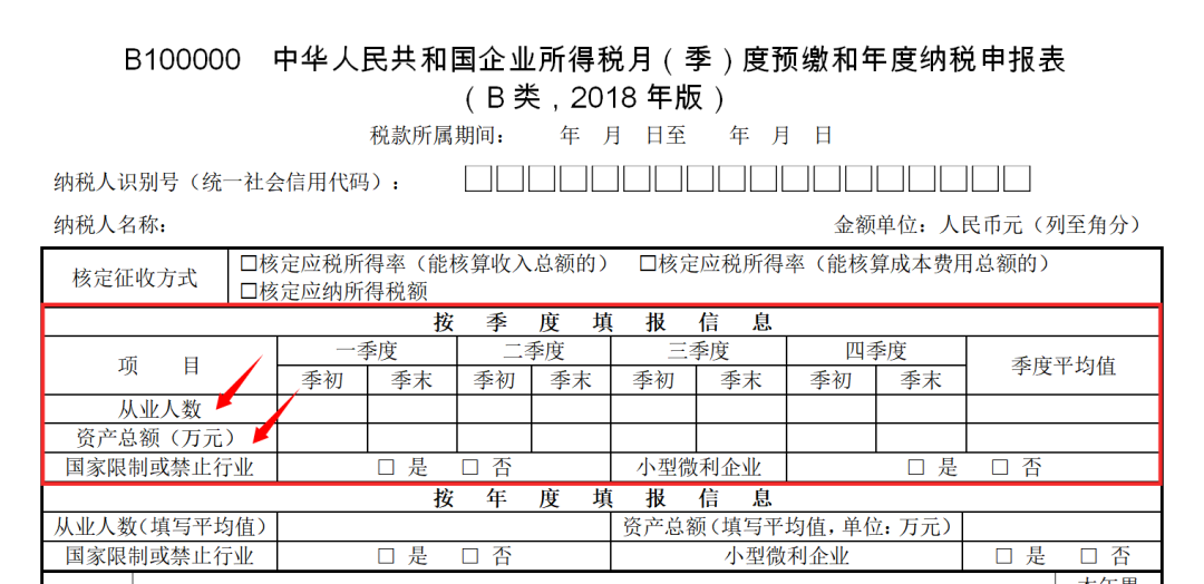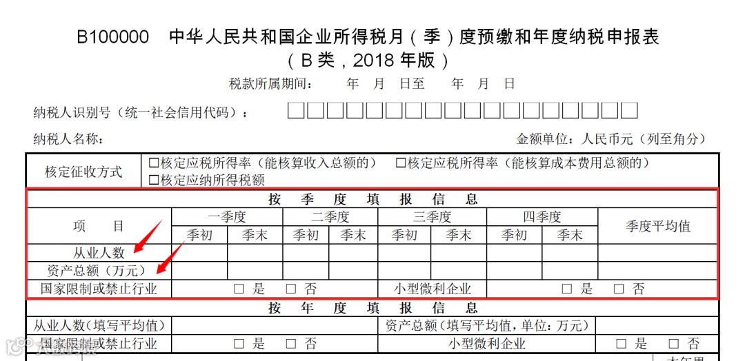 修订《中华人民共和国企业所得税月(季)度预缴和年度纳税申报表(B类,2018年版)》