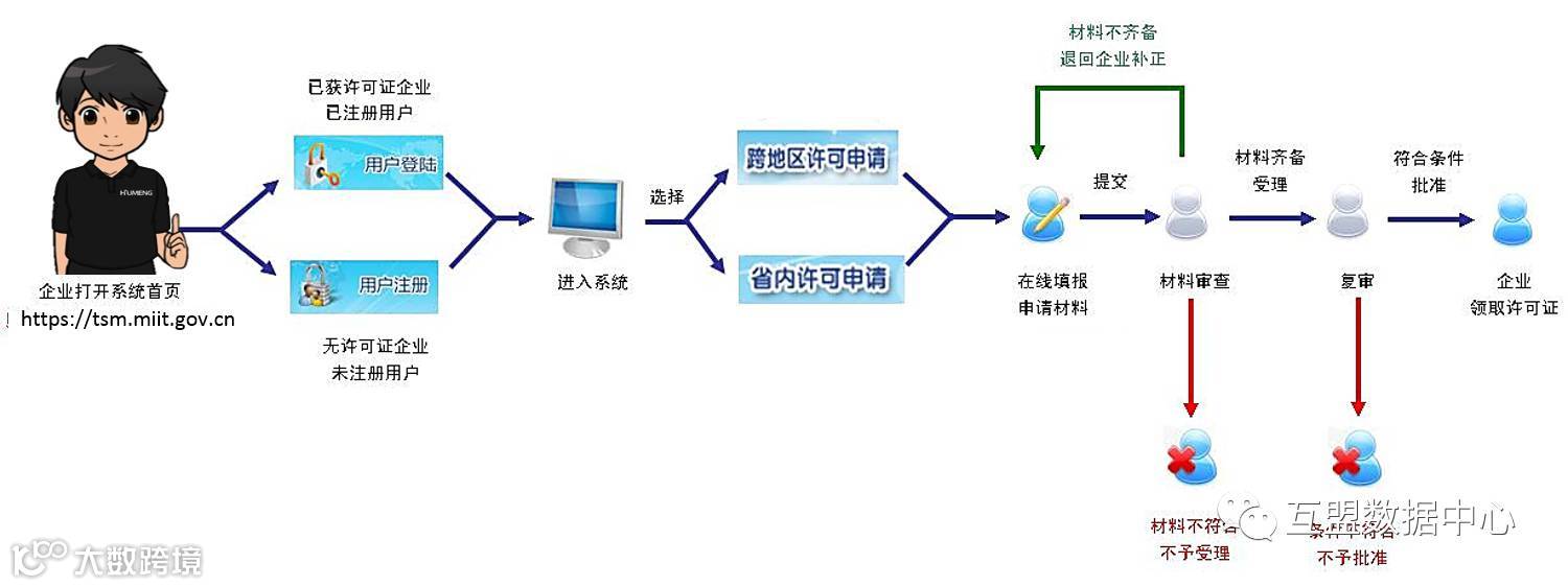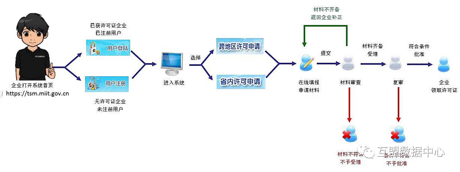 【登陆电信业务市场综合管理信息系统:https://tsm.miit.gov.cn进行电子档资料的提交(证件类原件扫描,复印件类加盖公章)】