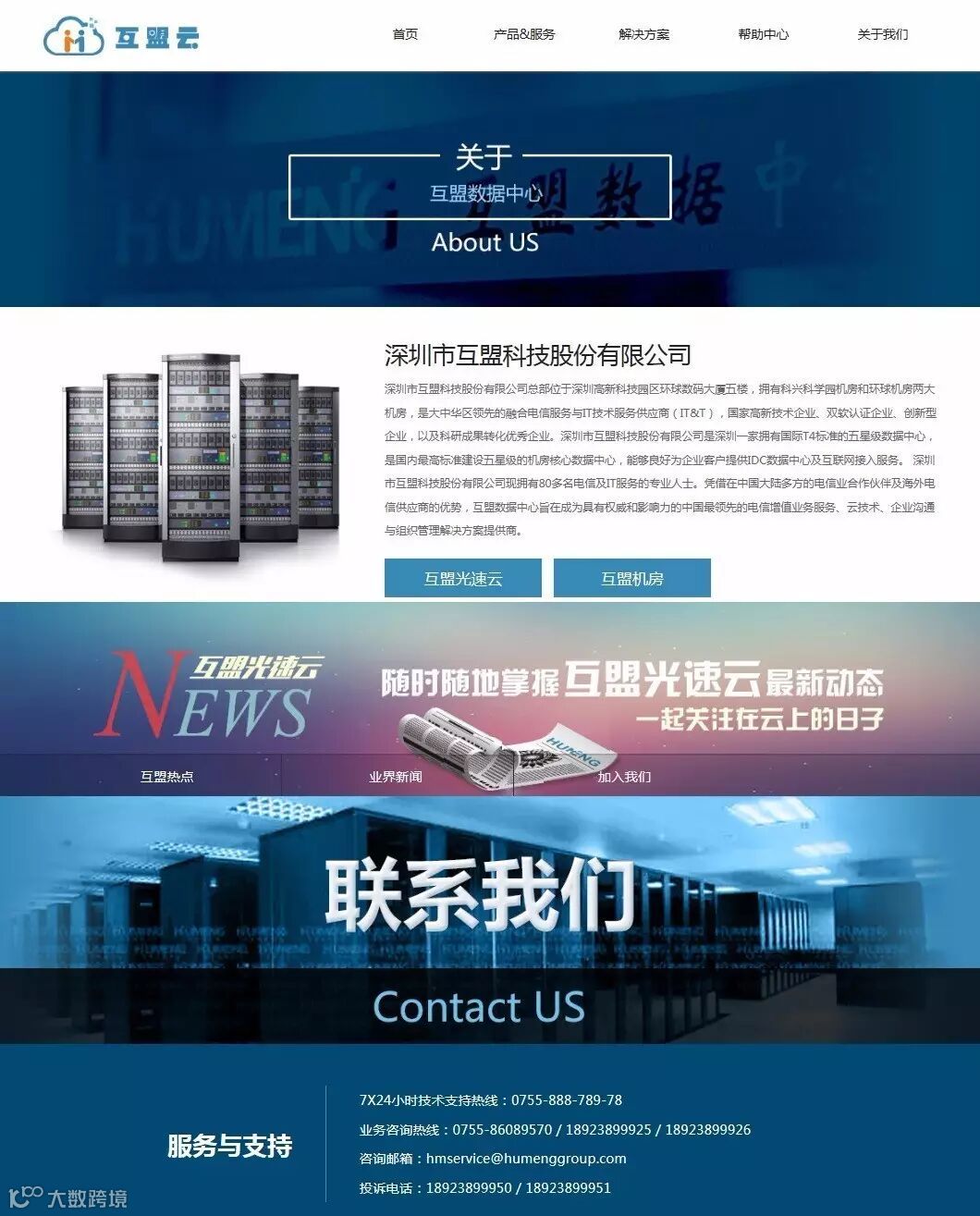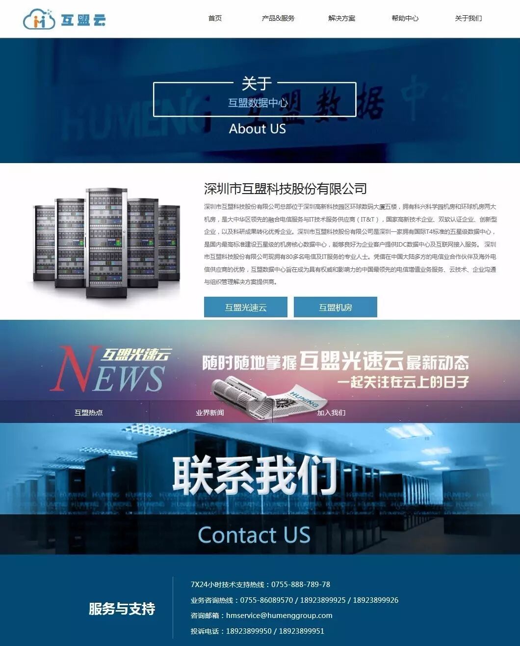 互盟云官网(www.humengyun.com)首页整体以蓝色为基调,简洁明了的画风,是不是科技感十足?它可是代表着小萌们的干净利索地工作效率和互盟为您提供最专业的技术服务哦!