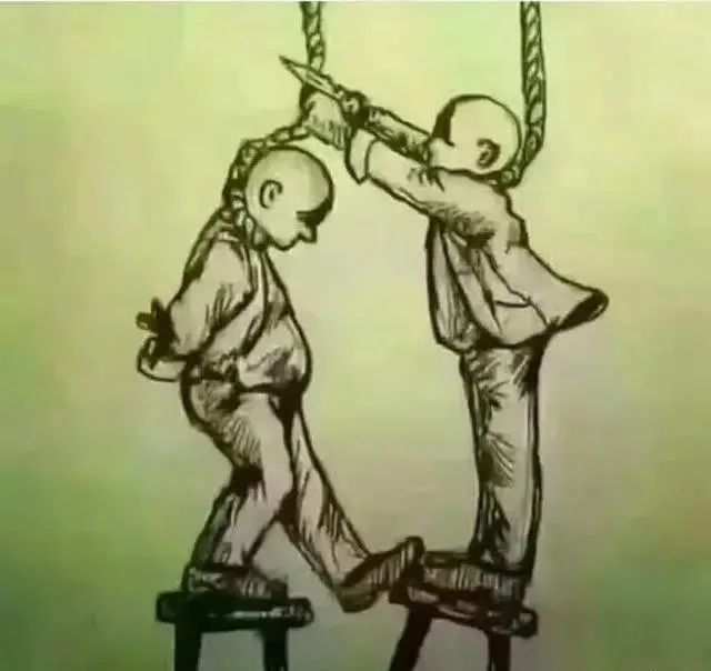 所谓恩将仇报,不过如此:你在帮他人剪绳子的同时,对方会踢翻你的脚凳。你尽全力帮助的人,在下一秒就将你置于死地。
