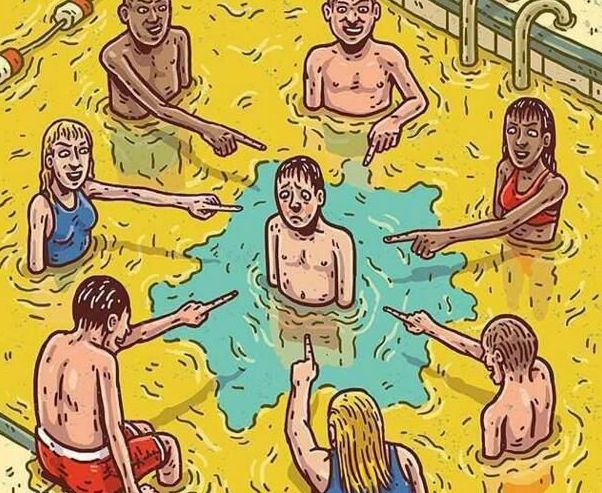 一群站在污水中的人,指责一个站在清水中人“不合群”。生活难免遇到这样的情况:如果我们在人群中显得与众不同,就会招来指责或是谩骂。