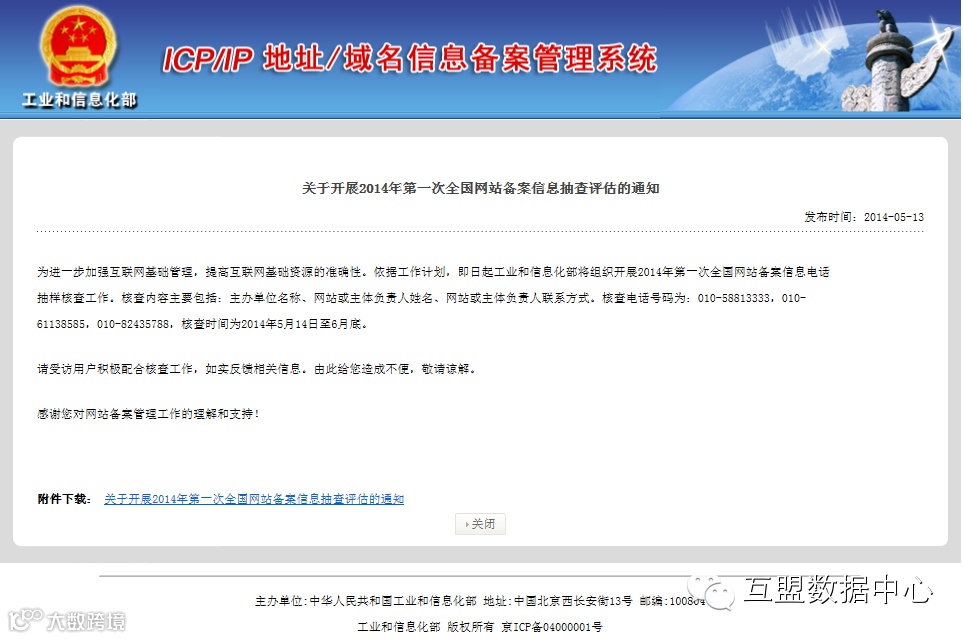 2014年,工信部两次对全国已备案网站信息进行抽样核查。