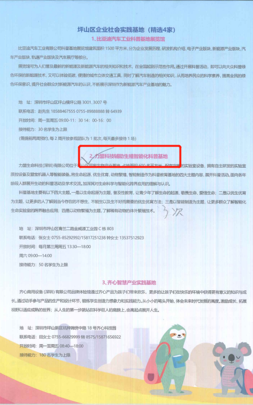 力盟生命科普研学基地入选深圳市坪山区2021-2022学年中小学寒假作业指引,作为中小学寒假“特色作业“推荐参观,旨在让青少年从实验课程中了解生命的起源、生命的价值,培养青少年热爱生命、关爱生命,善待周围环境中的自然事物,形成人与自然和谐相处的意识。