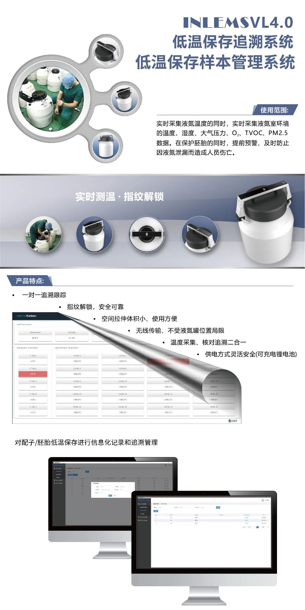 IVF实验室过往多使用传统化运营方式管理低温样本库,可能存在设备故障,人为风险,以及存储信息孤立化导致的资源浪费。INLEMS低温保存追溯系统 & 低温保存样本管理系统,实现IVF实验室智能化的低温样本保存追溯管理和环境监测管理,推动IVF实验室搭建一个高质量、规模化、可追溯、可共享的低温样本库数据平台。INLEMS系统已在全国多家生殖中心成功应用(包括但不限:北京大学第三医院、中南大学湘雅医院、郑州大学第一附属医院、重庆市妇幼保健院、武汉协和医院、四川精子库等),为辅助生殖中心提供了实用而具有社会意义的解决方案。