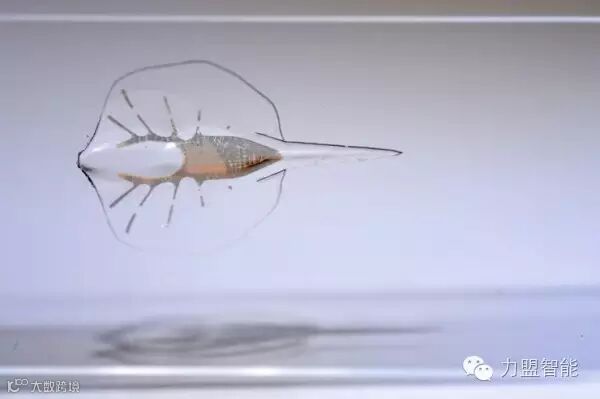 另外一些研究者从自然中汲取灵感,打造生物驱动的生物混合机器人。例如,来自加州理工学院的一支研究团队从水母中得到灵感,开发了一款生物混合机器人。研究团队将这款机器人称为“水母类机器人”,它有着能够绕城圆圈的手臂,他们称之为“水母机器人”,它的周围安装了一圈手臂,每条手臂都用蛋白质材料刻印了微型模型,就像活体水母的肌肉一样。当细胞组织收缩的时候,这些手臂就会向内弯曲,推动生物混合机器人在富含营养物质的液体中向前移动。