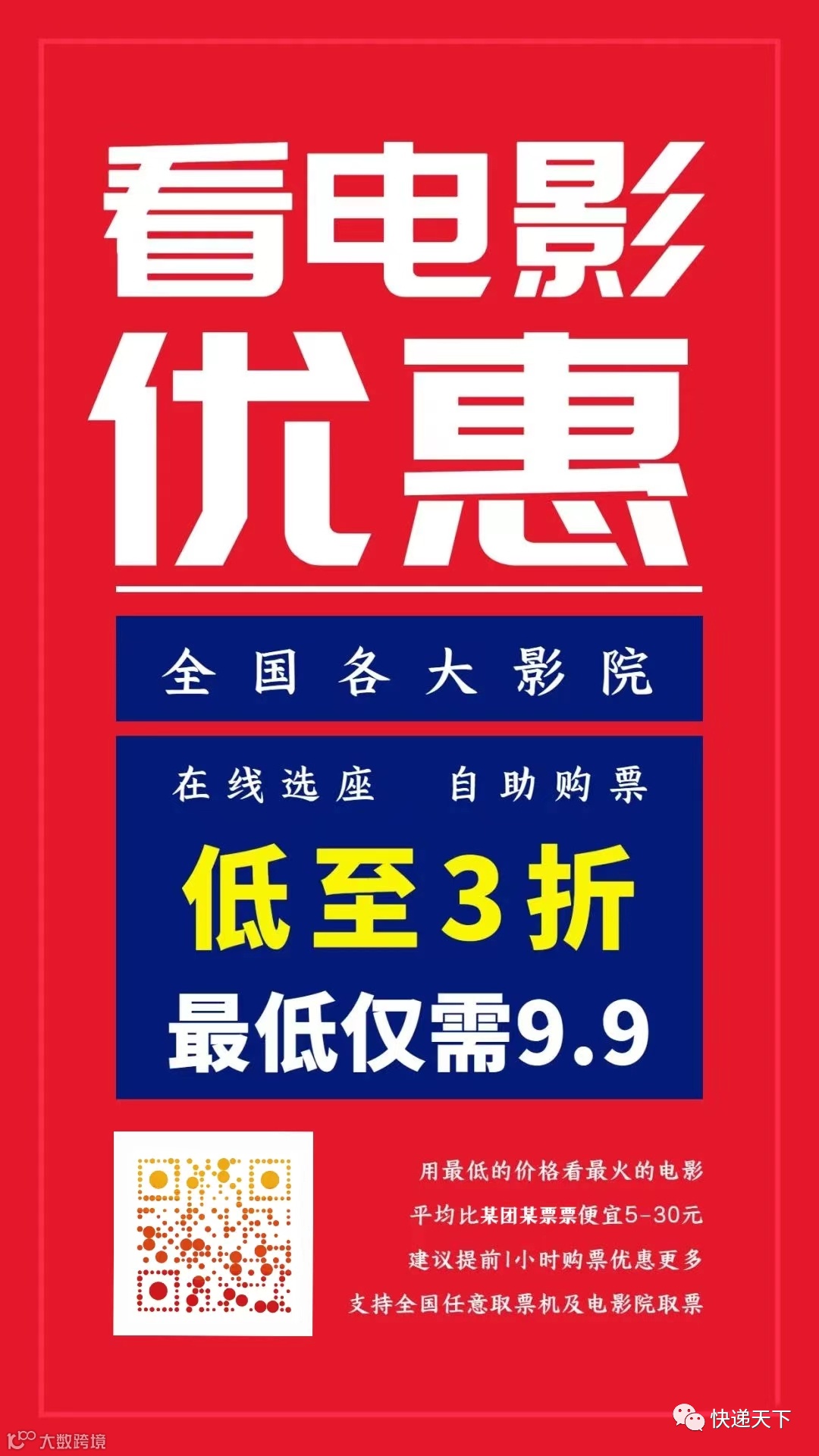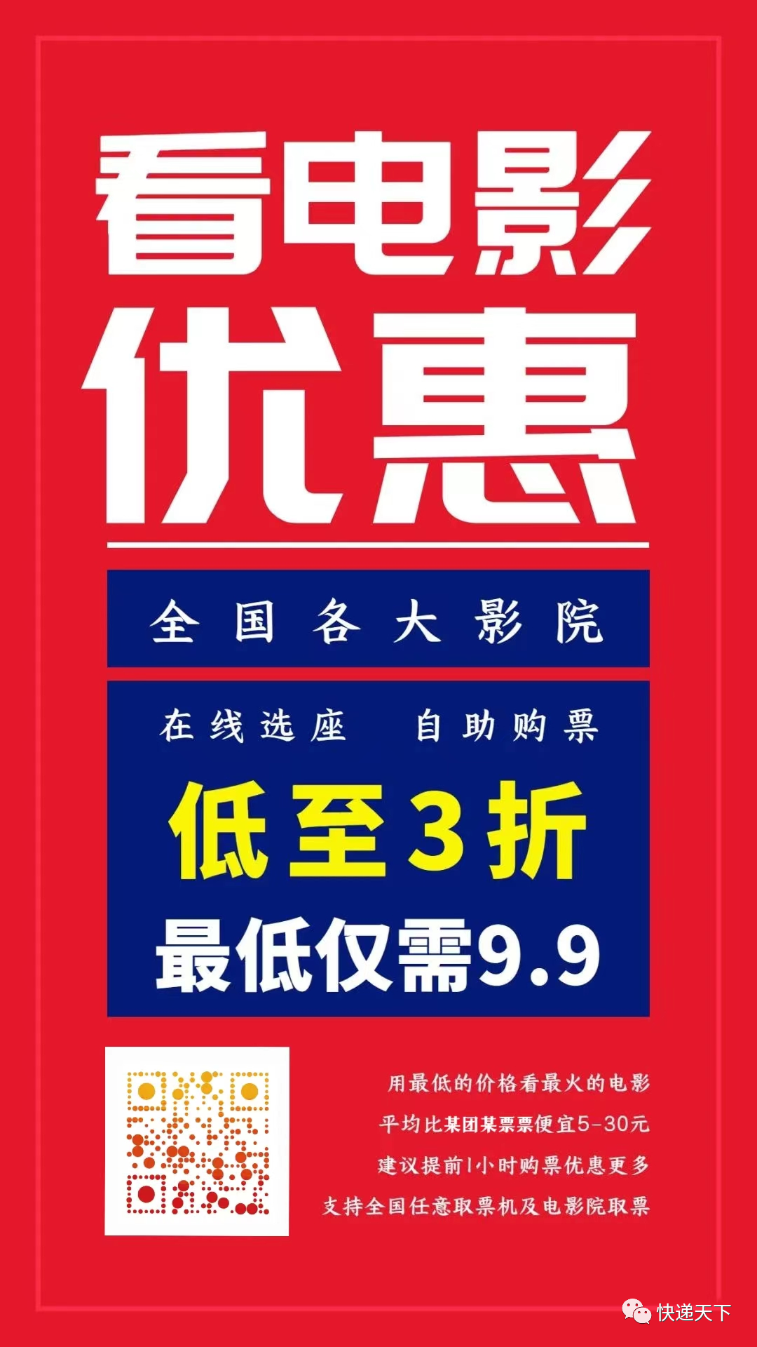 用最低的价格看最火的电影!支持全国各大影院在线选座、购票和取票;全国热门电影票低至3折起,平均比某团某票票便宜5-30元,最低仅需9.9。更快,更省,更方便!
