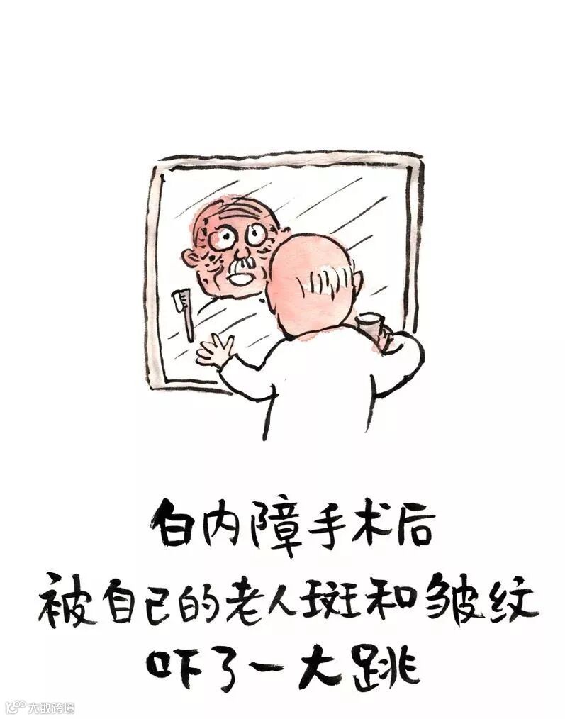 人老了,眼睛花了,带上老花镜,也被自己的老人斑和皱纹吓一跳。