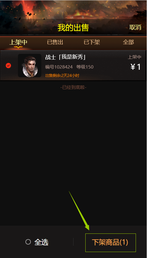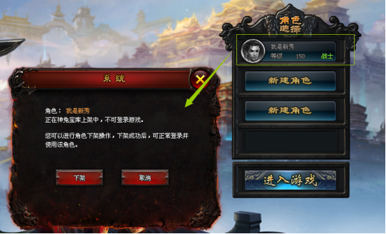 ★角色上架后,游戏内进行下线处理,不支持登录上架中的角色。