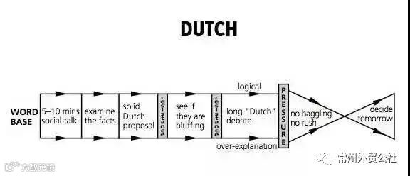 荷兰人:喜欢跟客户先聊天,然后检验产品提出方案,权衡是否被“坑”后,进行冗长的“荷兰式”的谈判。他们不爱讨价还价,也不会当天给你明确答复。