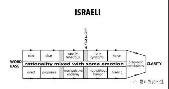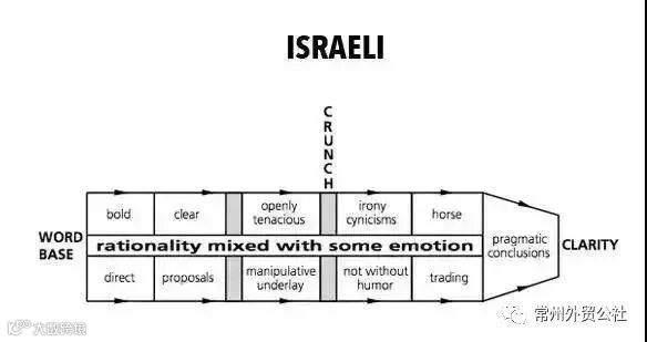 以色列人:木讷又直接,在大多数问题上很理性,也会情绪化。谈判时很精明,总能以幽默的方式反驳对方,最终获得自己的利益。
