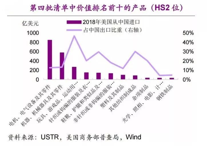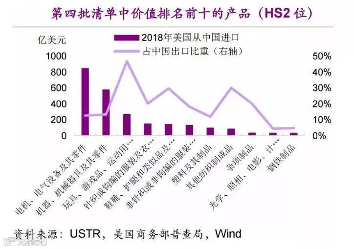 尤其是清单中的玩具、游戏品、运动用品对美国敞口较大,2018年美国从中国进口的海关价值占中国出口比重为47%。