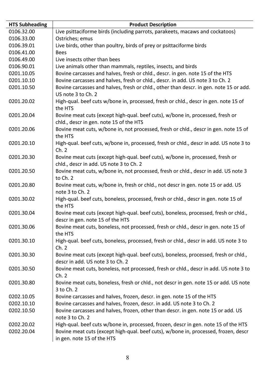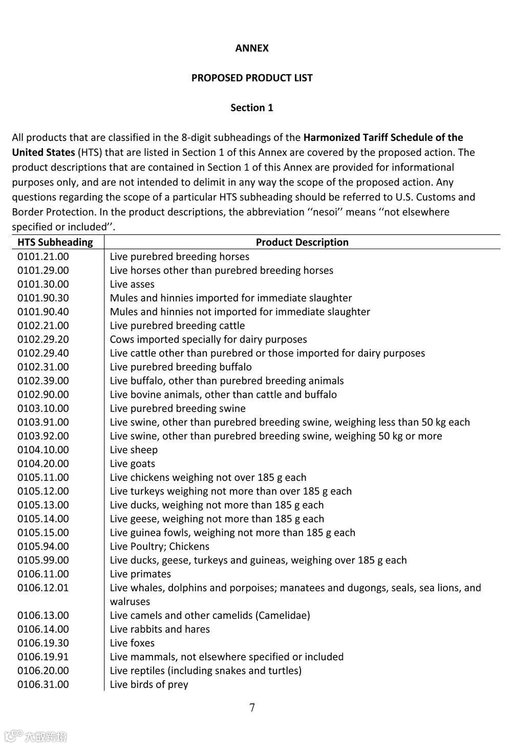 清单中的HTS CODE(the Harmoised Tariff Schedule)是美国的税则号,它与HS CODE的前6位是一致的,后4位则各国有不同的细化,所以建议输入前6位,然后根据具体产品描述去查询产品在美国的HTS码,进而确定企业产品是否在拟征税范围。企业也可以要求美国进口商确认出口产品的美国税则号。