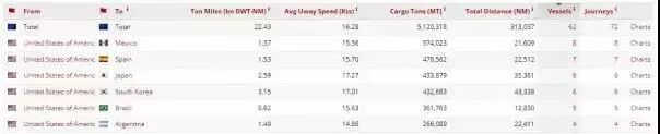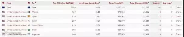 ▲2019年1月1日- 6月13日 ,中美航线上液化天然气运输船的航次情况