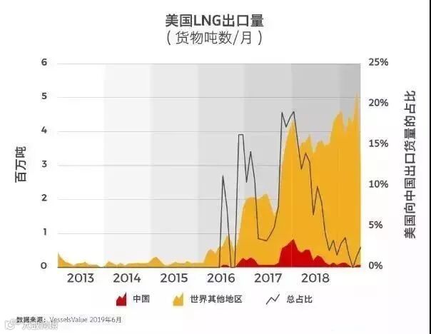 从今年6月初,中国对美国600亿美元商品上调关税开始,美国LNG出口至中国以及亚洲航线的货物运输都受到了进一步抑制。