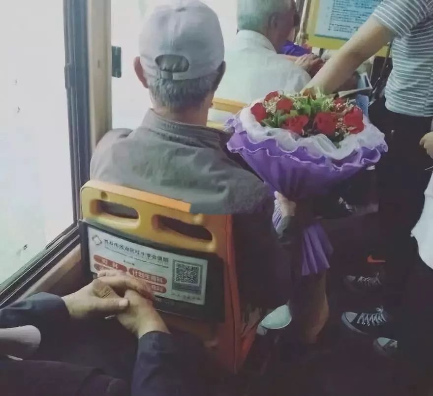 情人节,在公交车上看到一位老伯,小心地捧着一大束玫瑰花,他有些不好意思地笑着说:“妻子喜欢花,这是给她的。”