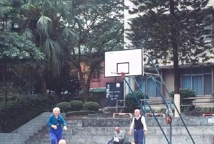 学校操场上,医学院的老教授正和老伴打篮球,午后阳光温柔地落下来,他们的笑容看起来格外甜蜜。