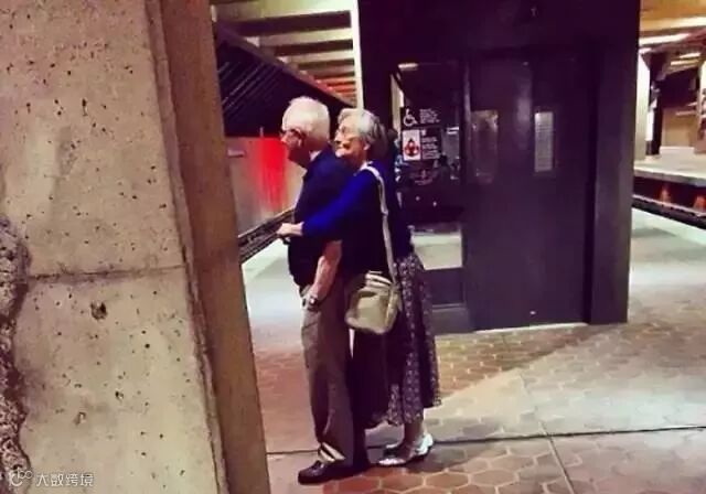地铁站,老奶奶从后面轻轻抱住了老伴儿,他们就像一对年轻的恋人,老爷爷虽然没有说话,但上扬的嘴角却暴露了他此刻的心情。