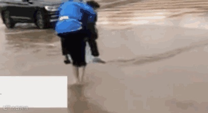 云南大理突降暴雨,马路积水很深。一位老爷爷脱了鞋,正背着老奶奶过马路,虽然走得蹒跚,但两位老人的笑声很甜。