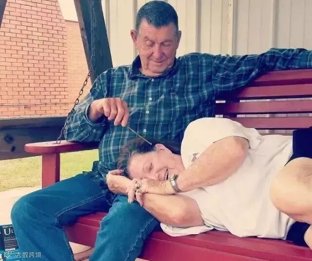 阳光明媚的午后,他们总喜欢在门前长椅上聊聊天,聊着聊着她就顺便躺在他的腿上眯一会儿,老爷爷问,睡着了吗?