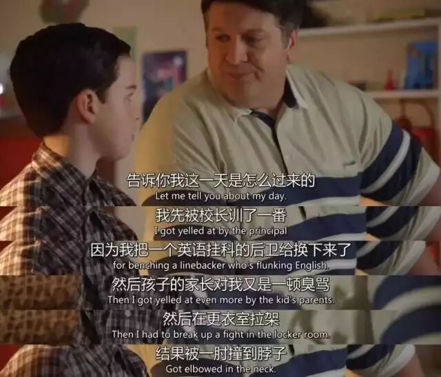 这时候,小谢尔顿的爸爸走到他身边,耐心的向孩子讲述了自己在工作上比他更惨的遭遇。