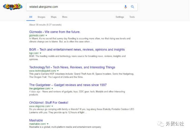 寻找替代的网站是一项艰巨的任务。但是,只要输入“related:网站”,你就让谷歌为你列出许多相似的网站,如图所示: