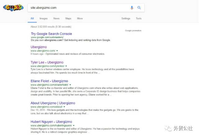 如果你想查看一个网站的索引页面,只需输入 ——site:ubergizmo.com,你就会看到只列出Ubergizmo相关网页的搜索结果。