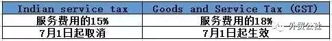 从7月1日起,印度将把其各种各样的本地服务税整合为货物和服务税(Goods and Service Tax (GST)),这个税收也将取代此前公布的印度服务税(Indian service tax)。