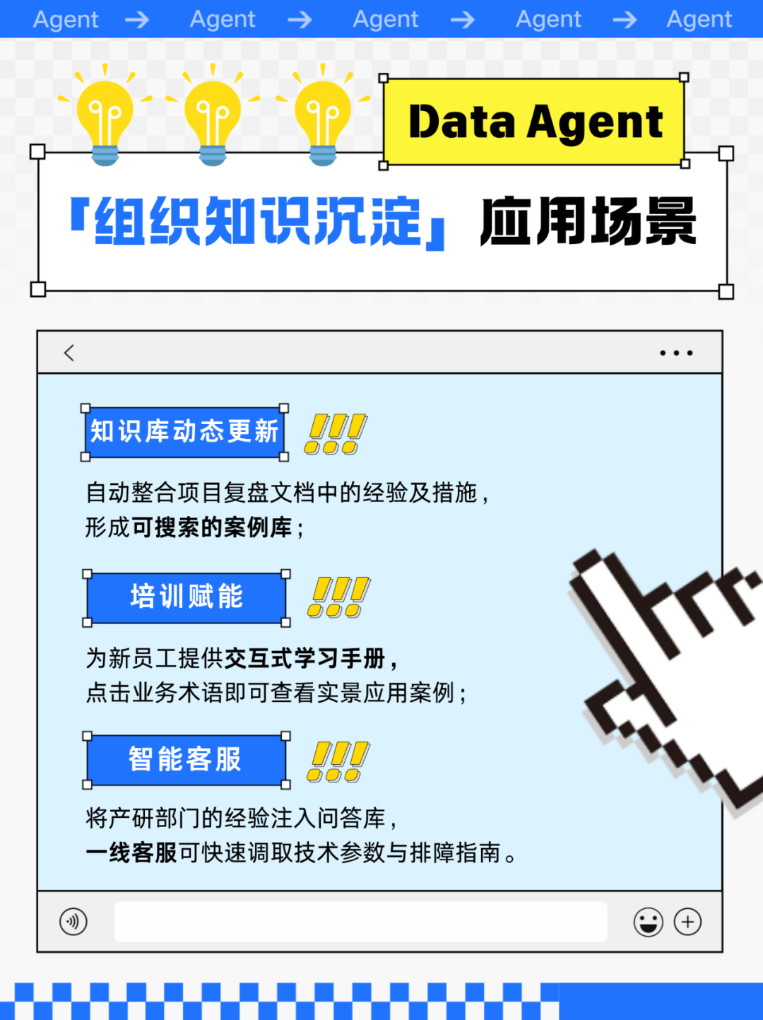 在企业运营中,Data Agent可支持将分散的隐性知识转化为结构化资产,让组织智慧得以持续积累和复用。