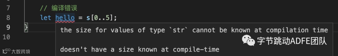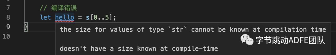 而如果不采用切片(Slice),编译报错不能在编译时获取其大小,例如: