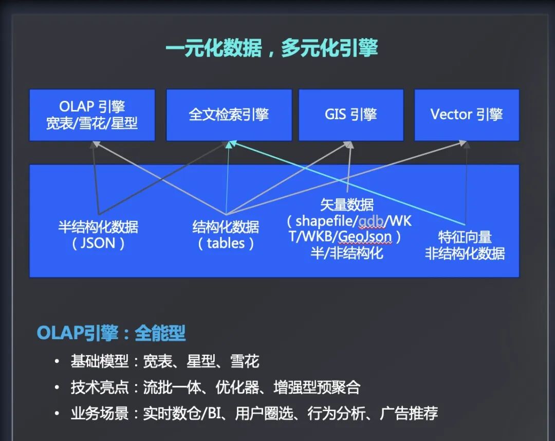 下面着重介绍GIS引擎、Vector引擎和全文检索引擎三个高级分析引擎。