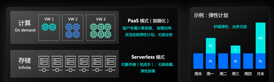 第二个关键的核心能力是弹性。提到云原生,那必讲的就是弹性,这也是用户、行业过去十几年对存算一体、存算耦合架构“诟病”的一点。云原生理念,能够帮助用户解决扩展层问题,使成本更加可控,更具性价比。