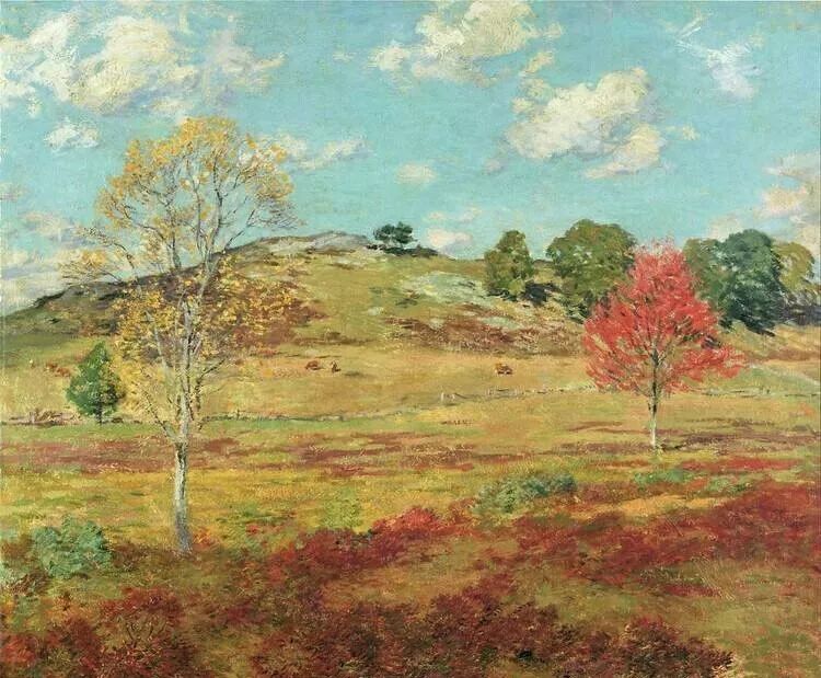 *图片来源:艺术大观。图片作者:美国印象派画家威拉德·梅特卡夫。Willard Leroy Metcalf(1858 - 1925年),他先就读于波士顿美术学校,之后进入了巴黎朱利安学院。他最初画的是人物肖像,后来转画风景,成为美国印象主义的重要画家。