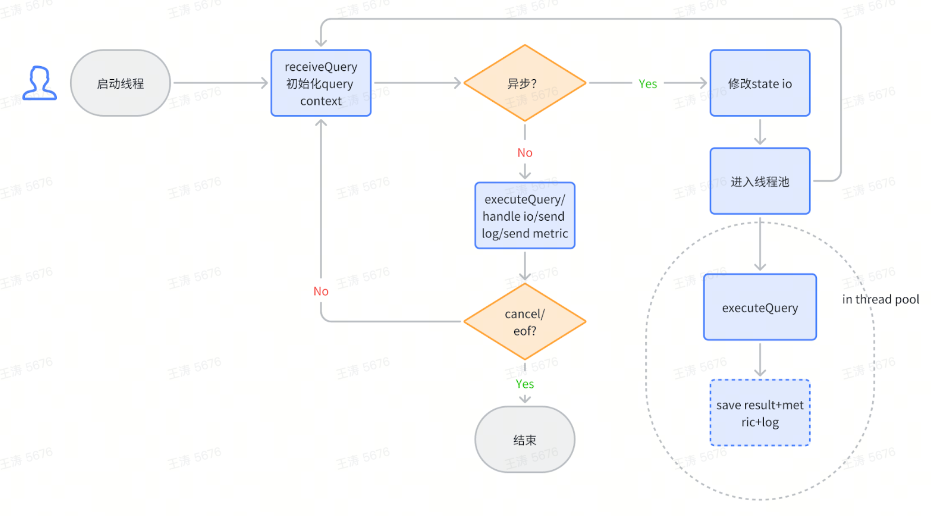 针对 query 的初始化还是在 session 的同步线程中进行。一旦完成初始化,则将