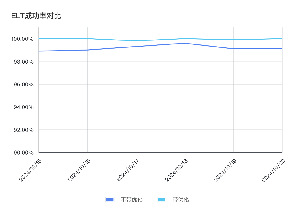 ByteHouse技术专家游致远以某数字娱乐公司举例,该公司通过引入ByteHouse来构建一体化数仓,从2024年10月15日、16日、17日数据来看,任务的成功率在分别提高了6.6%、4.4%和2.9%,整体成功率为100%。
