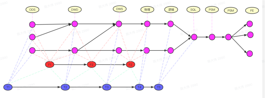一般数仓加工链路会进行分层,如ODS贴源层、DWD明细层、DWS汇总层等,最终透传到数据产品的前端页面。
