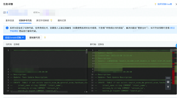 基于一站式新旧表切换功能,上述人工操作可以由平台自动完成,大幅降低了切换的工作量,提高了工作效率和质量。