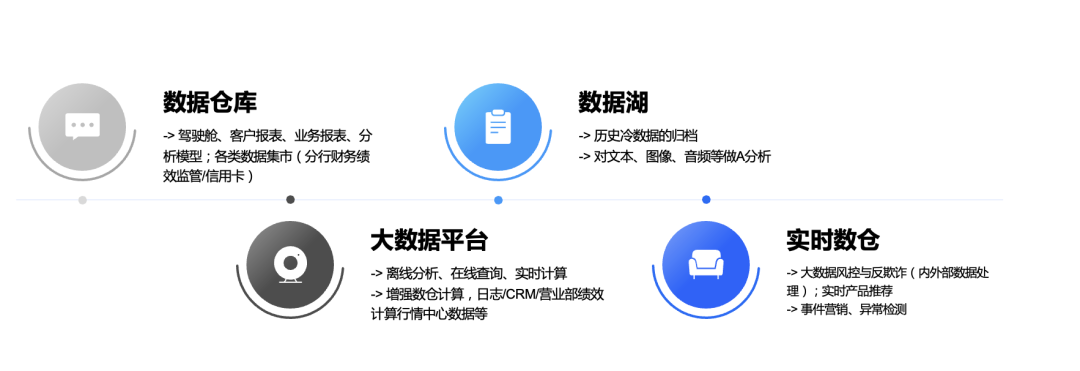 在以往,金融行业的数据技术还是基于经典的数据仓库,而数据仓库在过去十年也经历了一些升级。2015年到2017年,数据仓库从集中式升级到了分布式,增强了可拓展性,随后再发展至大数据平台。过去十年,是从无到有的过程,不断地解决了金融行业一些数据的全量的存储,包括实时和离线的计算问题。