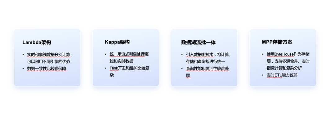 最后,MPP储存方案。使用MPP作为实时数据存储层,本质上其实也是Kappa架构的一个变形。基于Bytehouse对ClickHouse能力的升级,对数据链路的简化,以及开发效率的提升做了进一步的增强。