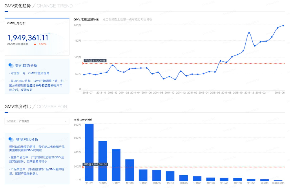 一个协调合理的配色能够帮助看板更好的讲述故事。例如:分析销售额同环比变化时,你可以使用统一的红绿配色,分别代表了销售额的上涨和下跌。
