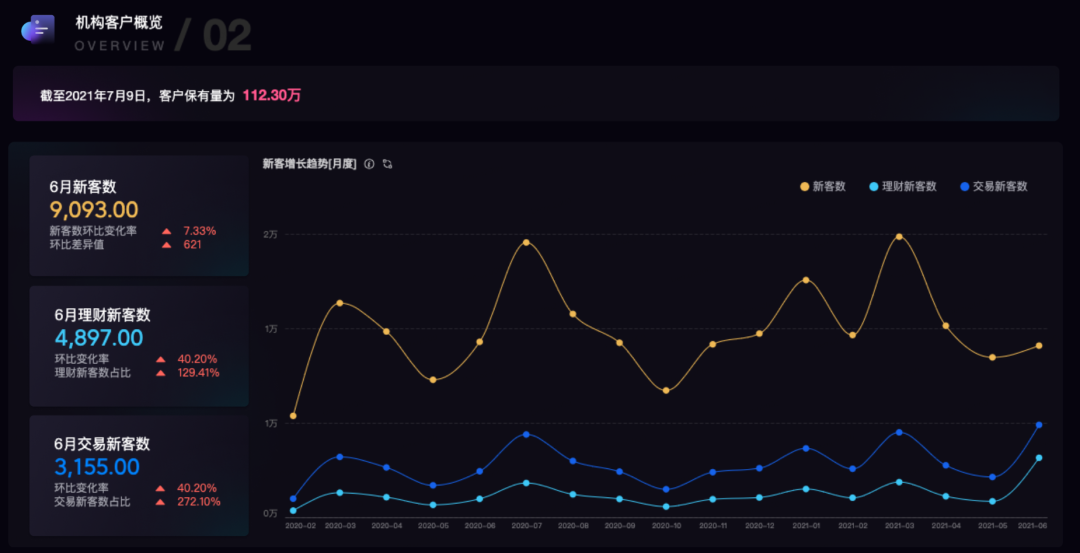 一个仪表盘内通常包含各式图表、大量的数字及文字,庞大的信息量很容易让客户失焦。而亮色图标则是吸引客户注意力的点睛之笔。合理运用图标的运用会大大缩短用户的理解成本,提高阅读效率。